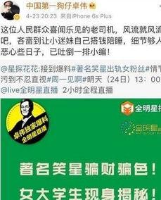 那天,阳光明媚,网友们正沉浸在美好的周末时光中。突然,一则爆炸性新闻在网络上迅速传播开来——卓伟曝光了赵四的视频!视频中,赵四的形象大打折扣,这让许多粉丝和观众感到震惊。